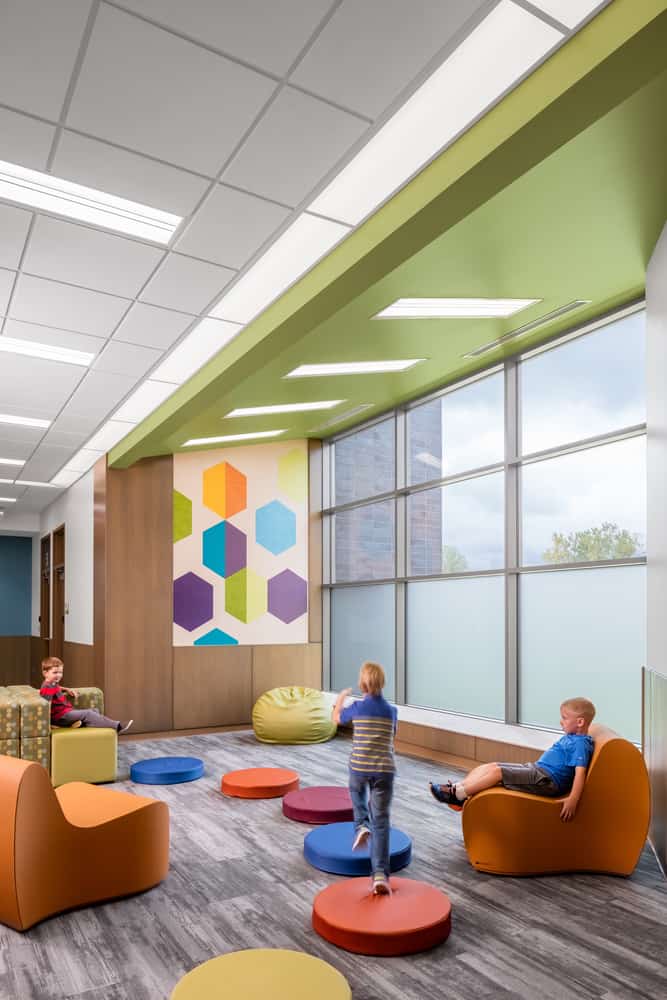 In 2014, Northeast Metro Intermediate School District 916 in the northern suburbs of Minneapolis-Saint Paul opened the first known primary school of its kind. Created specifically for children who live with severe autism and emotional-behavioral disorders, Karner Blue Education Center took a dramatically different approach to school design that married the functions of education with elements more akin to behavioral health.