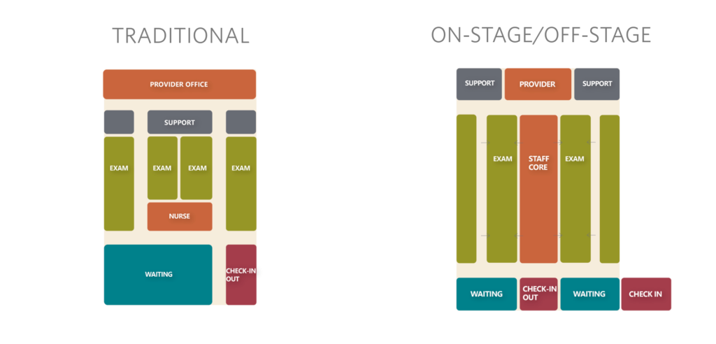 Traditional clinics tend to follow the familiar model of double-loaded exam corridors with nurse stations in the front and support spaces and provider offices in the rear. However, this is not the only layout option for outpatient facilities, and not necessarily the best fit for every healthcare team. Patient demographics, clinic specialties, and preferred care models all play a role in space planning.
