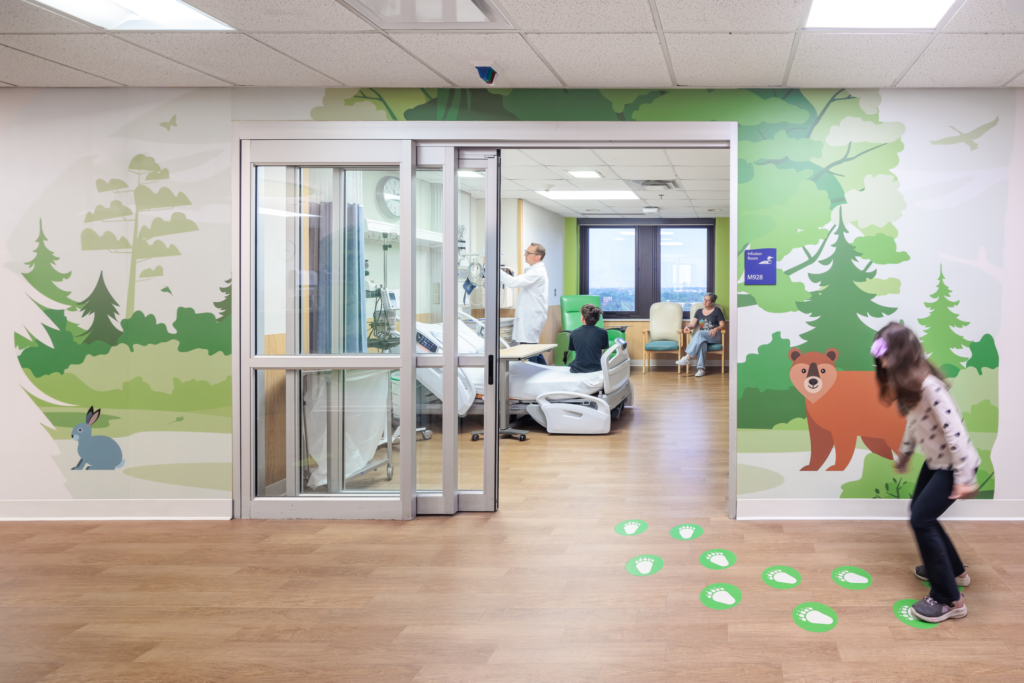 Whether a project is a renovation or new build, healthcare planners identify design inefficiencies that make navigation challenging, using creative, custom solutions to solve them. Our graphic design team works closely with clients and BWBR designers to create signage that not only makes wayfinding simple but is tailored to pair with selected finishes and enhance the overall environment. Imagery, textures, and colors all play a role in differentiating areas of a clinic from one another, with layered elements that make each space memorable and identifiable.