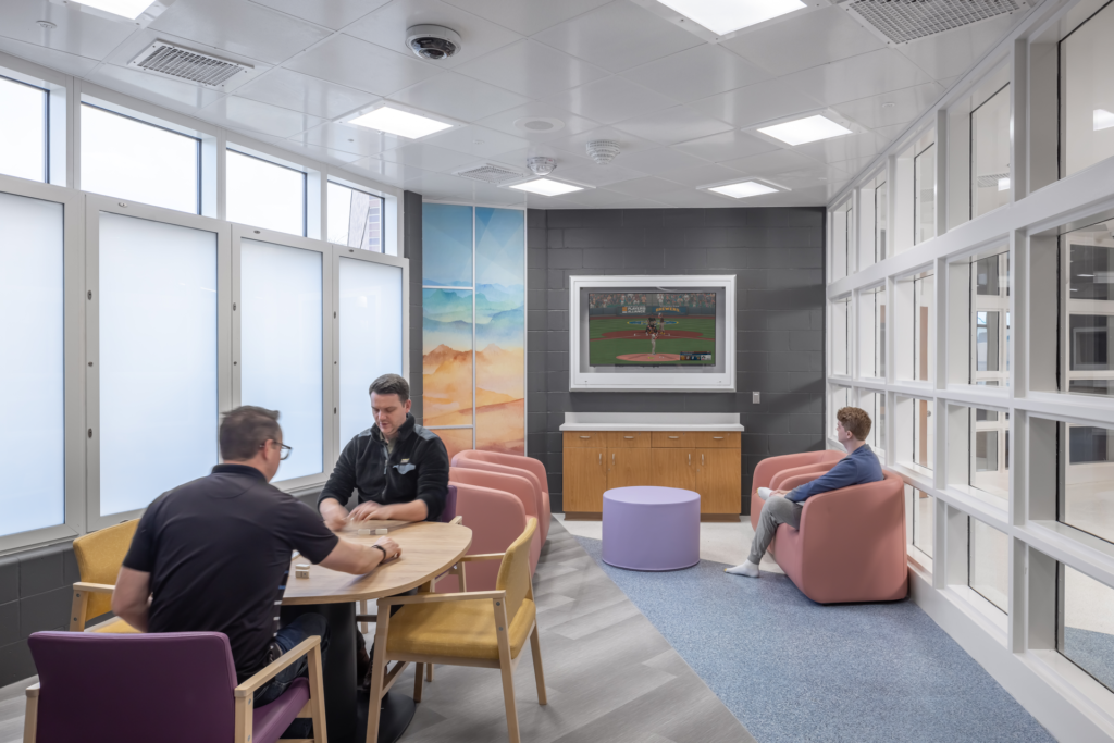 Evidence-Based Design (EBD) bases design choices on credible research in order to achieve the best possible outcomes. Designers with EDAC certification demonstrate the ability to apply this process to facility design, including measuring and reporting results. While traditionally seen in healthcare environments where it has been proven to improve HCAHPS scores reflecting patient experience, an evidence-based approach can also provide meaningful impact in forensic facilities. We’ve begun to see an evolution of forensic facilities moving toward behavioral treatment approaches, bringing a greater focus on therapeutic, dignified healing, and it’s crucial that architecture and interior design support this.