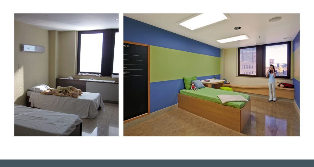 With these descriptions side by side, you can start to see the range of options for how mental and behavioral health facilities can feel to patients, families, and staff. Our charge is to create spaces that support the great work that our clients do as they treat patients. We do this by supporting positive behaviors rather than by attempting to punish problem behaviors.