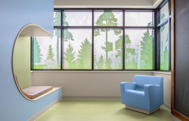 A critical part of design involves the thoughtful selection of furniture and fixtures, customized for each behavioral health space.