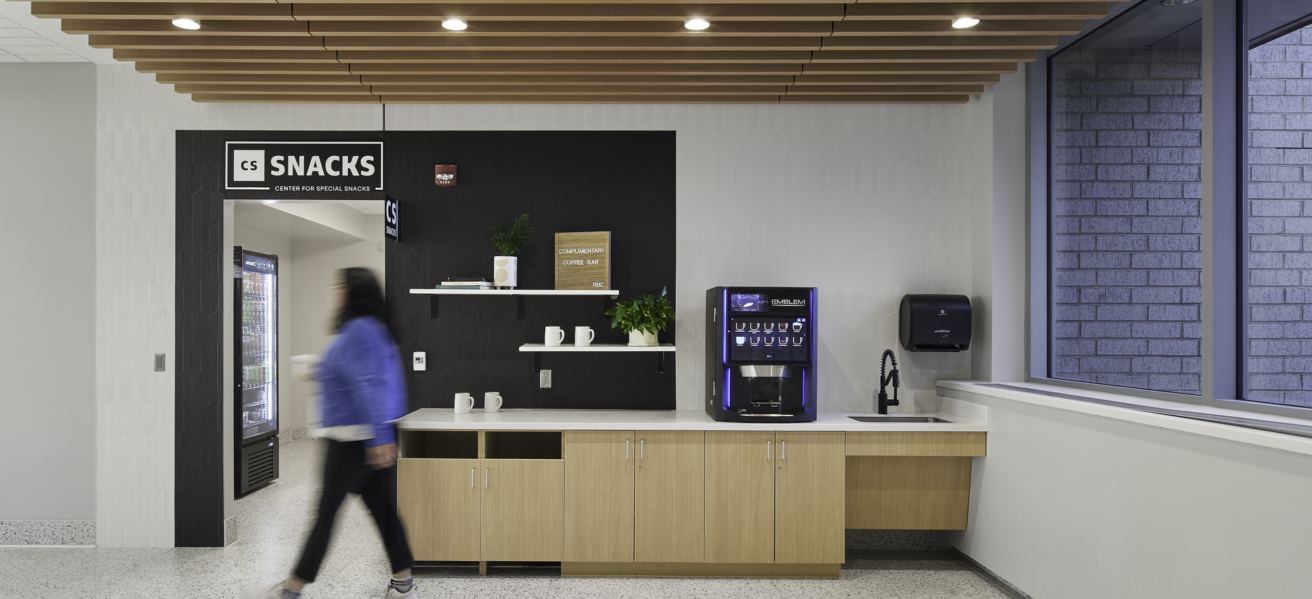 A healing environment with an inviting feel, CSS embraces a fresh approach to healthcare in a space that doesn’t feel like a hospital. With lots of natural light, a café with a warm fireplace, access to the outdoors for both patients and staff, and a right-sized facility that is easily navigable, the center facilitates comfort and wellbeing before, during, and after surgery.