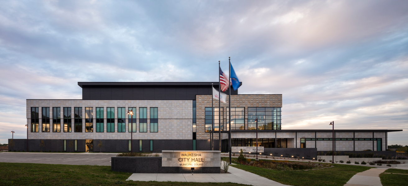 The former City Hall was built in 1965 and was beginning to pose significant maintenance and operational concerns. By designing a new, multi-level facility and limiting surface parking on-site, BWBR and the City of Waukesha were able to keep the City Hall on the same campus while reducing the overall footprint. The new building is more secure, durable, and efficient, with all services located in one building to improve both the workplace experience and civic engagement.
