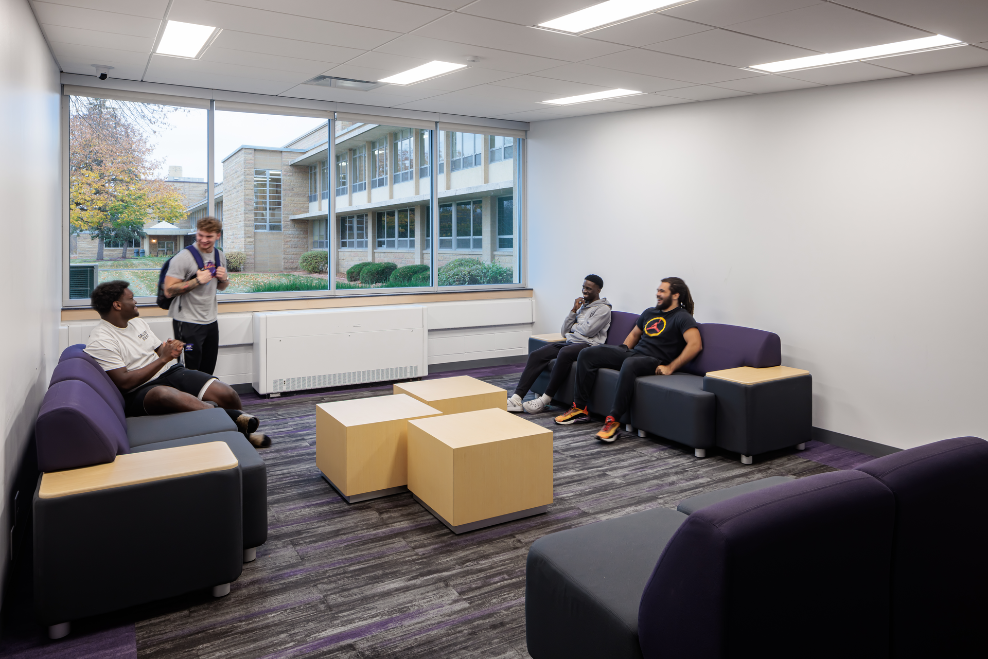 New three-level building; suite-style living with 144 beds (48 beds in eight suites per floor); large community space, full kitchen, and study areas build community and feature homelike amenities