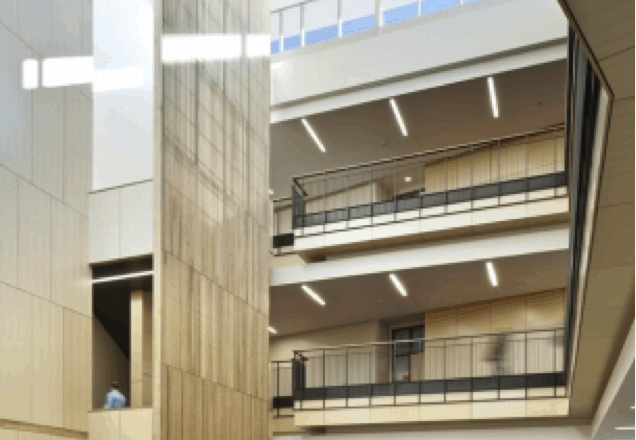 Large lecture halls and classrooms with flexible seating configurations to accommodate the departments for communication studies, economics and management, history, psychology, and sociology and anthropology; state-of-the-art labs for research in neuroscience, psychology, audiology, and behavior; digital arts and communications laboratories; departmental offices