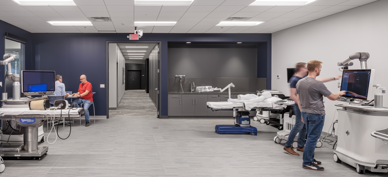 As a quickly growing, mission-oriented organization, flexibility was key to the design of the space, which includes both workspaces and staff amenities and highly technical lab and production facilities. As HistoSonics works to advance their revolutionary cancer treatment technology, an education center forms the heart of the space, where doctors, prospective patients, and other visitors are welcomed in for regular events and hands-on training.