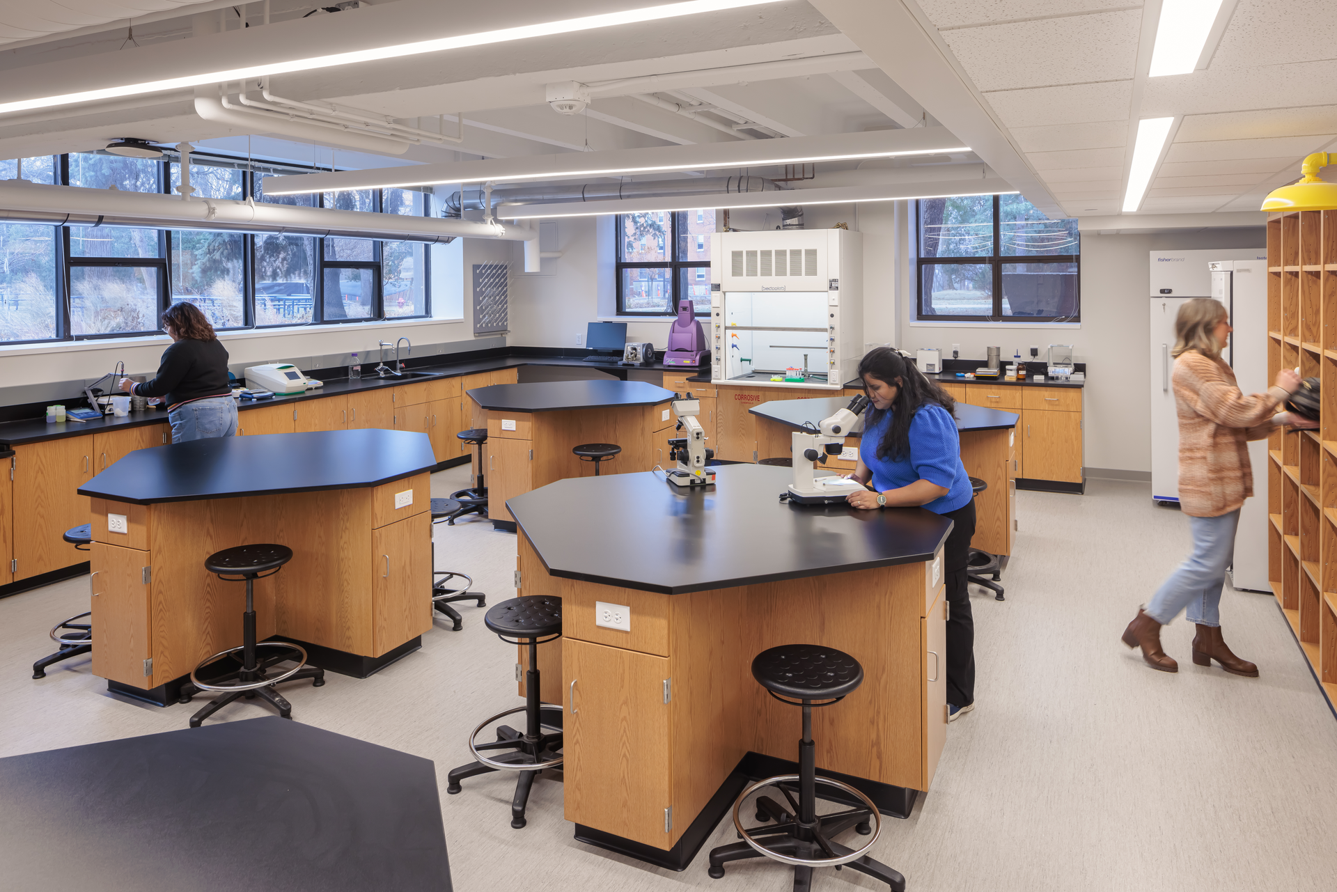 With enhanced technology and upgraded teaching, research, and student lab spaces, the reimagined hall supports women pursuing STEM careers into the future, creating a collaborative, state-of-the-art environment that prepares students to work in professional laboratories.