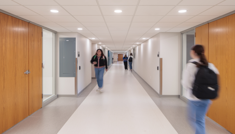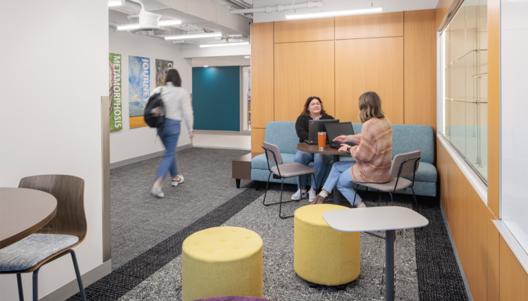 The design maximizes visibility between labs and circulation spaces, effectively showcasing experimentation and discovery, and features a collaboration hub to foster strong connections between students. The addition of a new entrance makes the facility fully accessible from the campus mall, alongside updates throughout the interior infrastructure.
