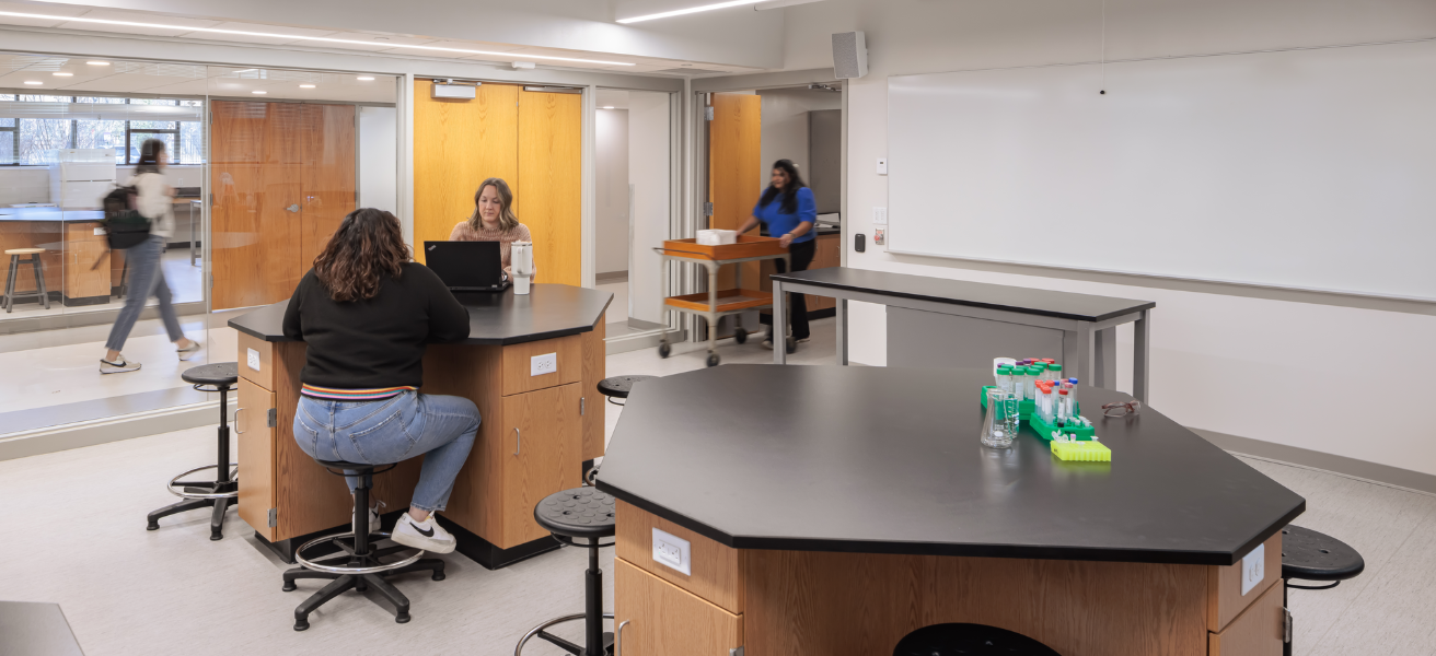 Upgraded labs, classrooms, and faculty offices; new Collaboration Hub, along with a variety of collaborative student spaces; accessible building entrance; improved visibility between learning and circulation spaces; updated infrastructure throughout building