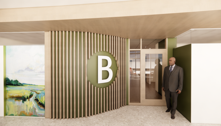 With a curvilinear layout inspired both by traditional New Orleans architecture and the design and functionality of brain synapses, the space will utilize sun screens both to mitigate solar heat gain and to help patients with visibility and processing issues safely and comfortably navigate the interior. The final design will also include a healing/sculpture garden and music therapy room.