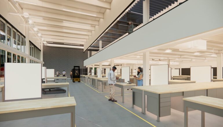 Building on ongoing master planning efforts dating back 10+ years, the project keeps sustainability and longevity at the forefront, maximizing space and budget by utilizing existing square footage to its best and highest purpose rather than building all new. A cornerstone of the project is the interdisciplinary Collaborative Design Studio– a shared makerspace where students from all degree programs will be able to work together on solutions to society’s evolving challenges. Students and visitors will also experience the new Precision Agriculture lab, structures lab, thermal systems lab, mechatronics lab, and more.