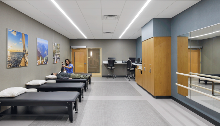 With new operating rooms, private inpatient suites dedicated to post-surgical care, and on-site rehabilitation space, the institute is designed to prioritize outcomes and well-being for patients receiving specialized orthopedic surgeries, all within a calming environment that enhances comfort and healing.