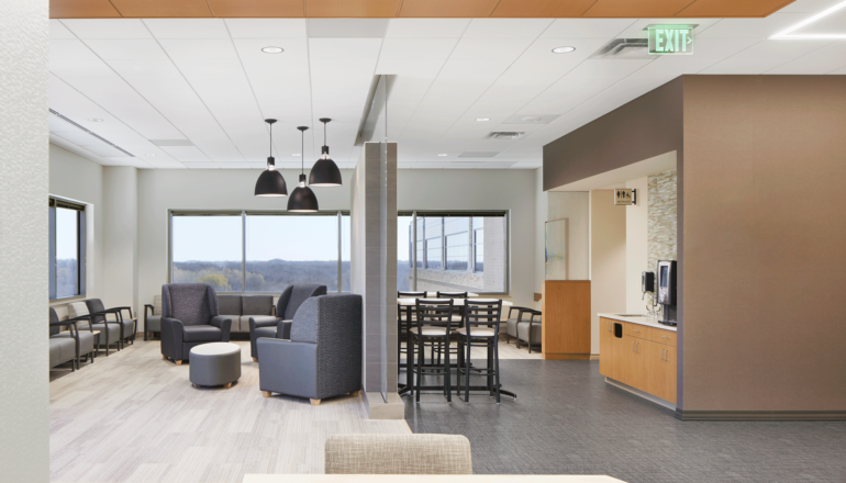 To support the growing needs of the community, BWBR partnered with Ridgeview Medical Center and Twin Cities Orthopedics to expand Ridgeview’s Two Twelve Medical Center campus. A new fifth floor was added to the occupied facility, creating the Orthopedic Institute, along with a renovation of the existing fourth floor to further house expanded services.