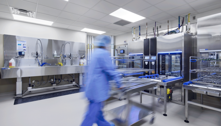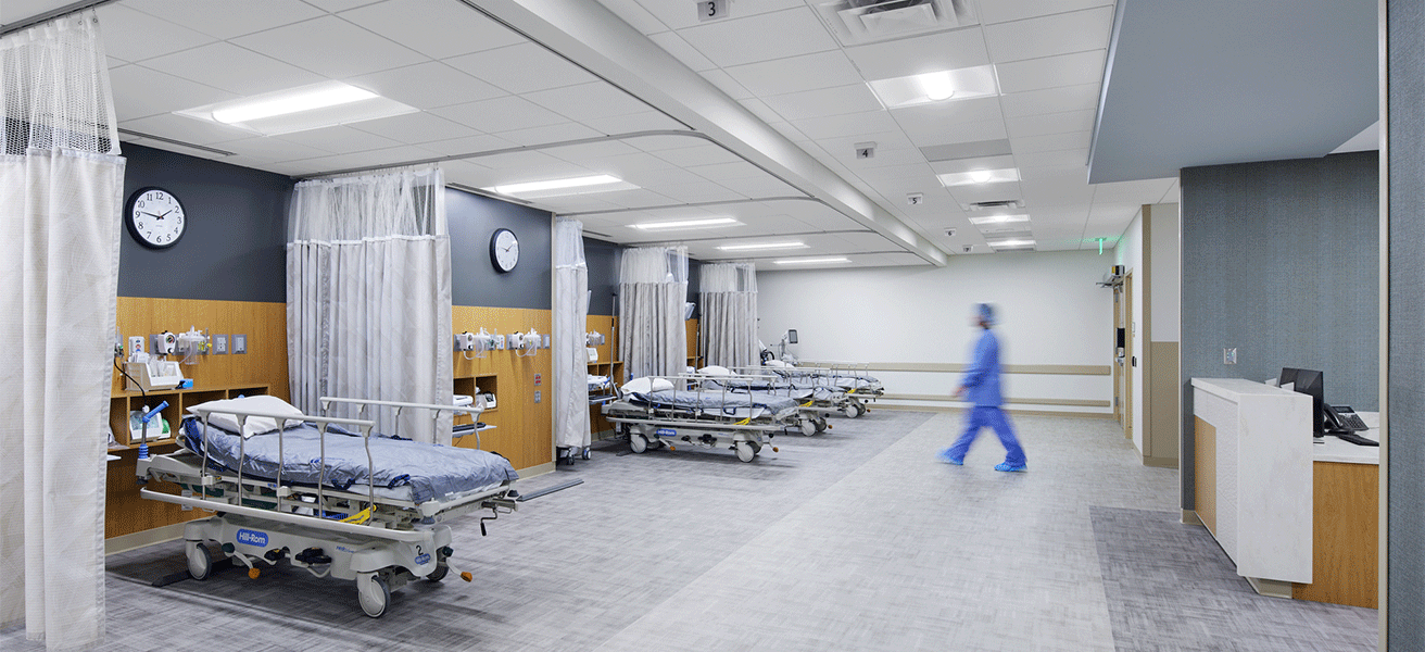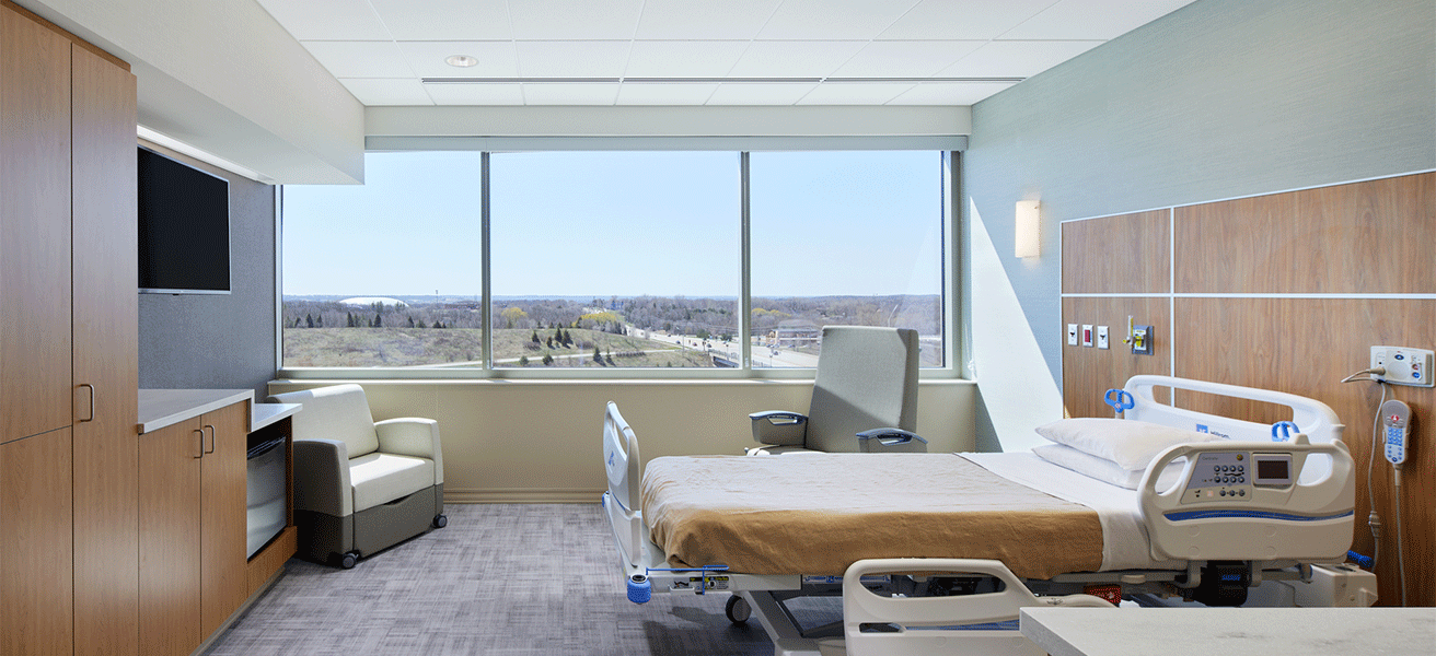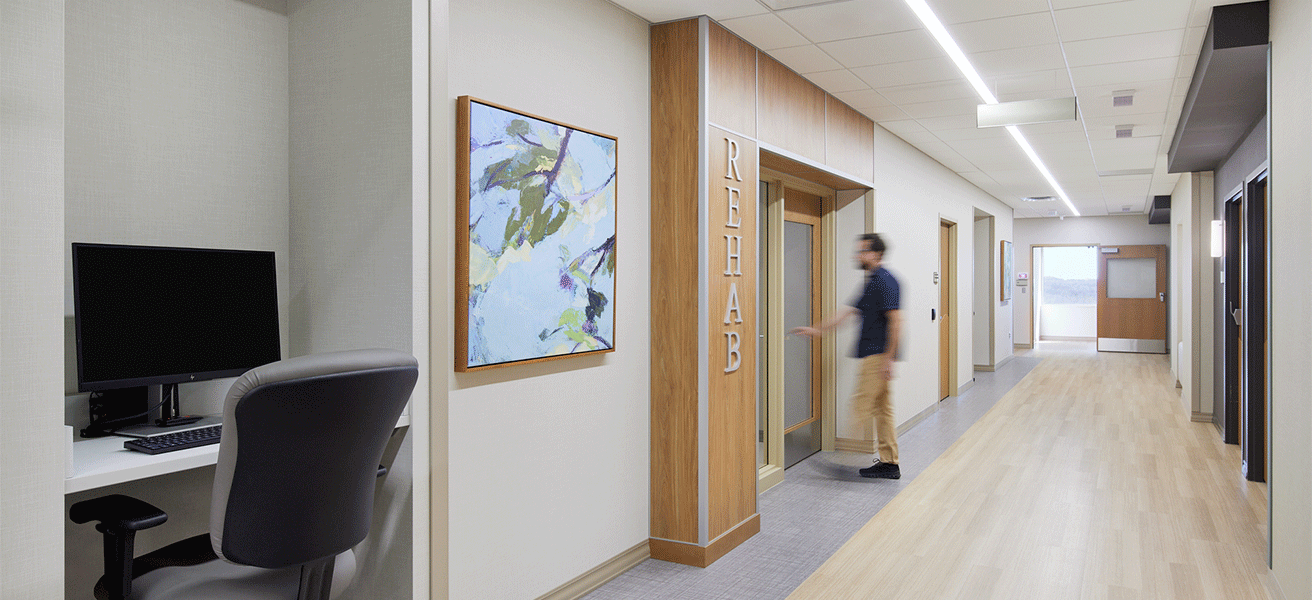Includes six operating rooms for orthopedic joint replacements, 20 inpatient rooms, support spaces, and a dedicated on-site rehabilitation space for patients