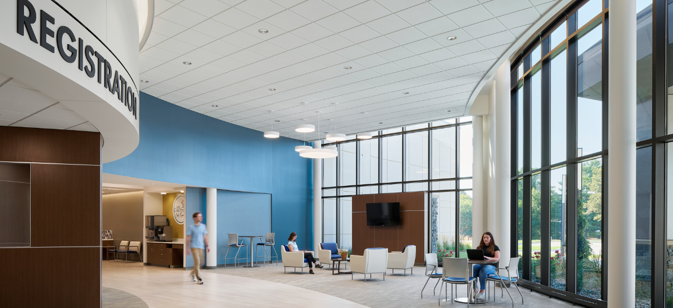 Phase 1 provides a new campus main entry, central registration, radiology department including MRI and CT modalities which consolidates all services into one location, and a concourse that leads to the remodeled spaces. A new outpatient clinic houses infusion rooms, spaces for stress testing, psychiatry, counseling, and staff support. Phase 2 creates a surgery clinic and new surgery suite that includes two OR’s, transforms the existing OR into an endoscopy suite, and adds new pre-op and recovery spaces with private rooms. Materials management, wound care, and cardiac rehabilitation spaces are also updated. Interior finishes throughout both the addition and remodeled spaces create a refreshed feel while still being comfortable and welcoming to longtime community visitors.