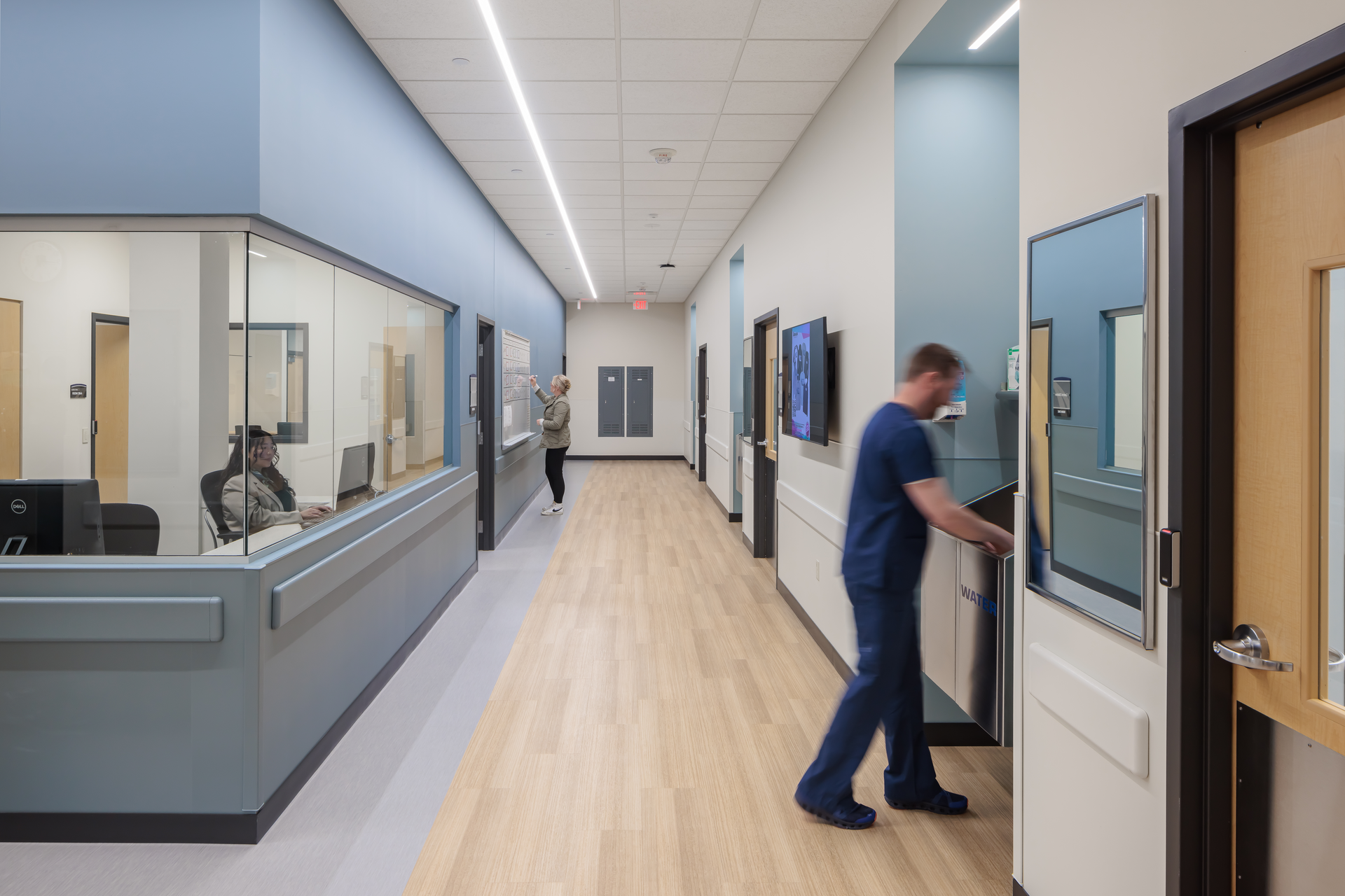 To align with the College’s vision, several programs needed to expand, while others were either moving to different buildings or being phased out. Working from the Health Education Building Master Plan, the first projects identified in were Surgical Tech and Health Simulation, which were initially adjacent and landlocked within the building’s first floor. However, by relocating the Surgical Tech program to the third level, it was able to expand to meet current accreditation requirements while also allowing Health Simulation to expand from its original footprint into the area previously occupied by Surgical Tech.