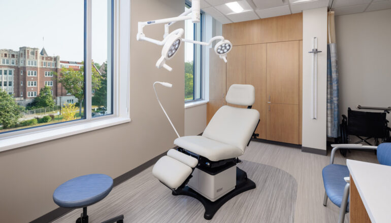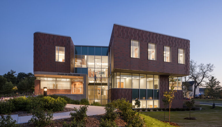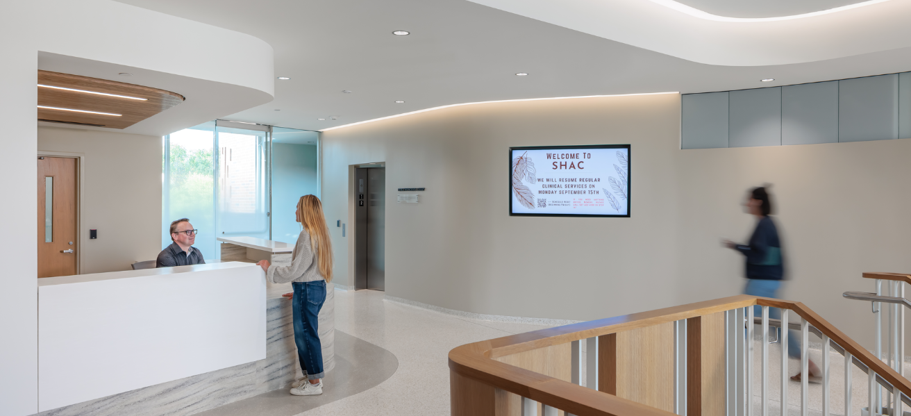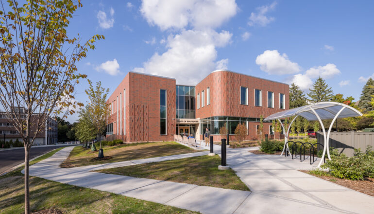 The Carleton College Class of 1974 Student Health and Counseling (SHAC) Center creates a student-centered facility that holistically meets student medical, counseling, and wellness needs while providing a safe and healthy work environment. The new facility supports goals of creating a “college community actively engaged in the work of making Carleton more inclusive, diverse, and equitable,” while also efficiently supporting increased student usage, allowing flexibility for changes and growth in the future. The welcoming design helps reduce the stigma surrounding mental health treatment, while private counseling and exam areas are configured to protect anonymity and privacy for students seeking help.