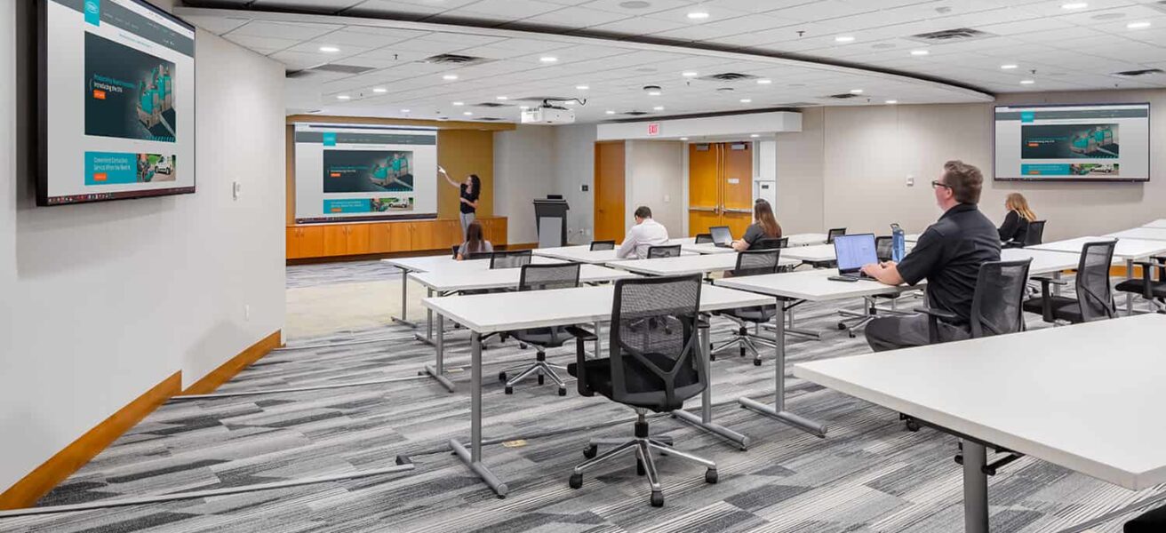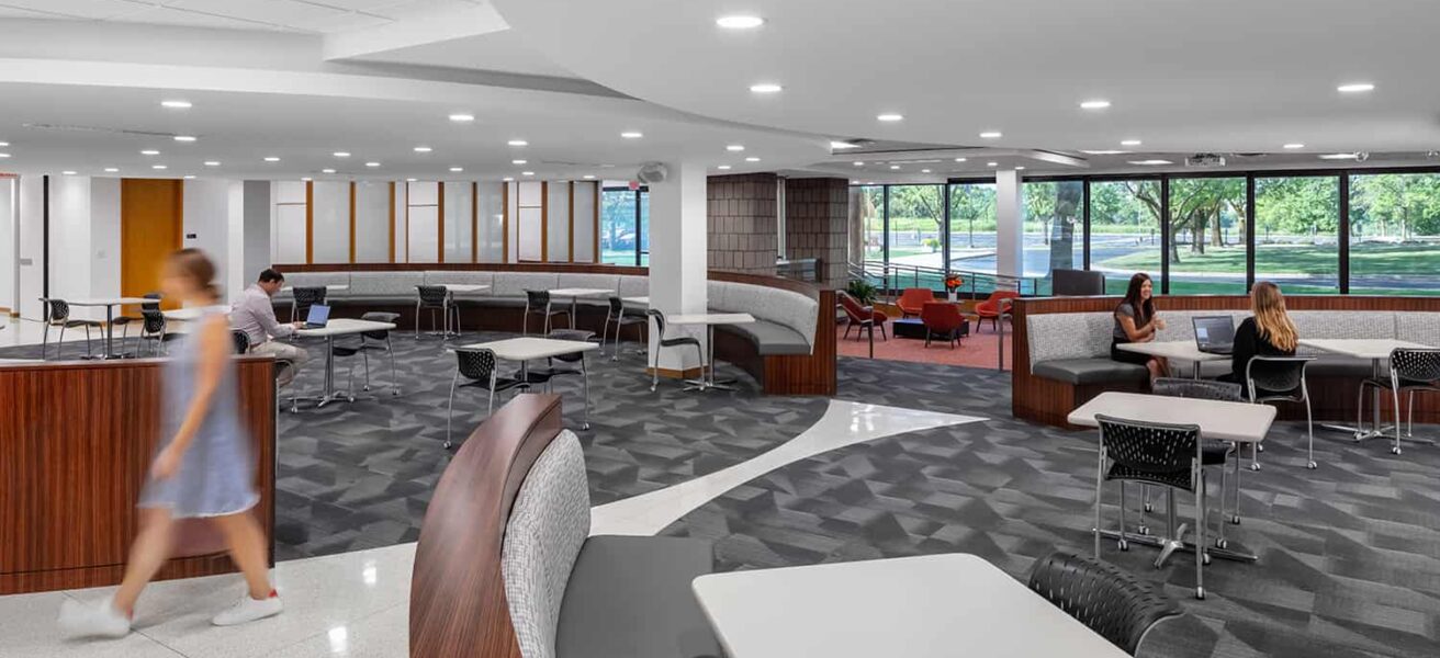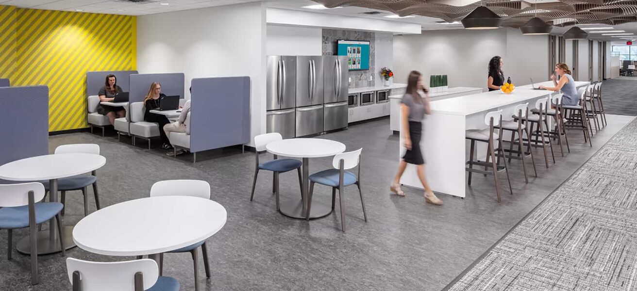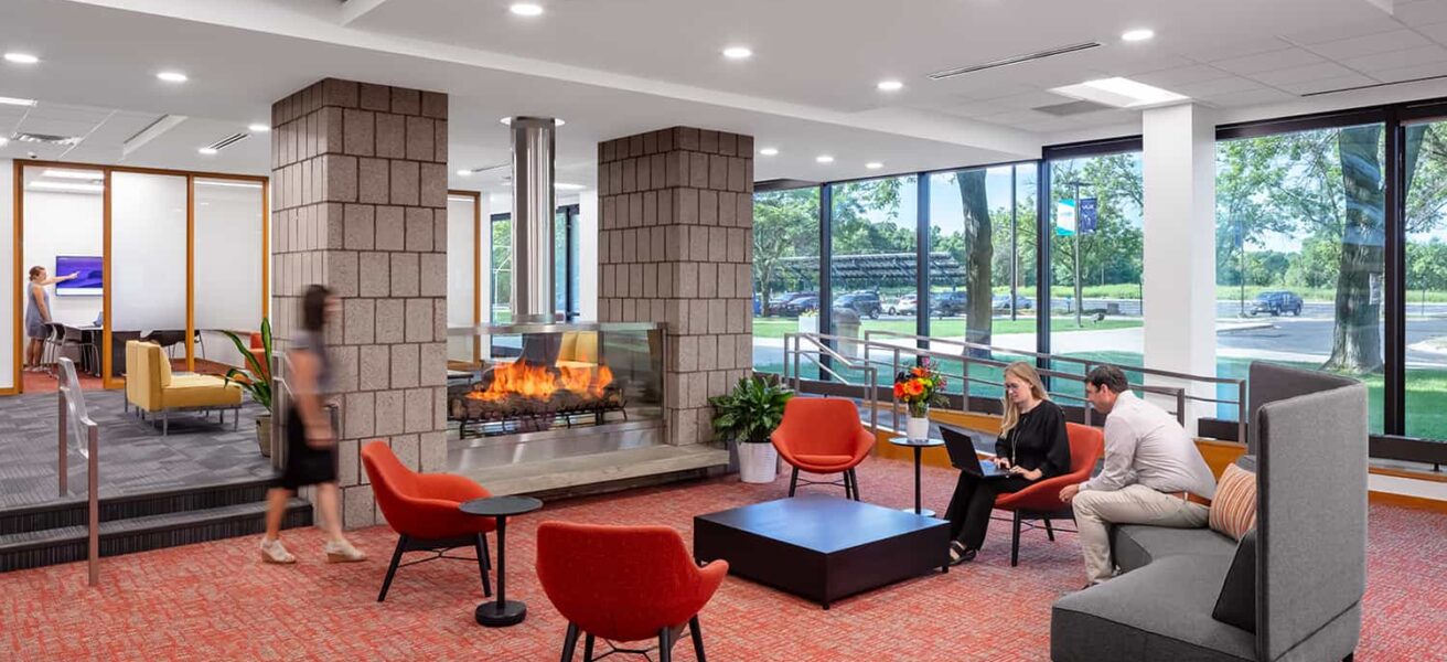 Shift from traditional closed offices to open, flexible, modern workplace, including 80 percent reduction in closed office space; emphasis on showcasing products and brand; flexible furniture solutions; access to daylight for majority of employees