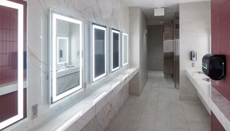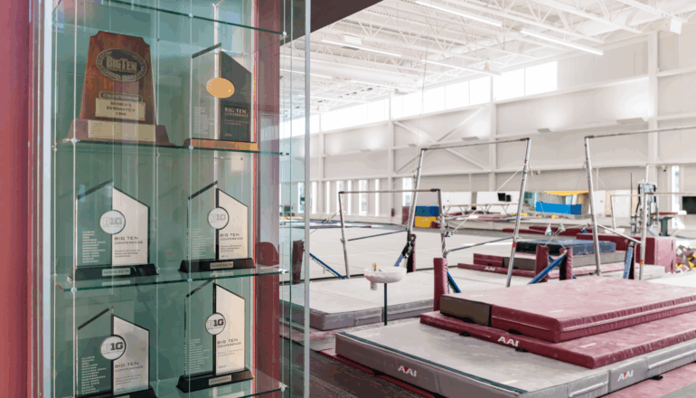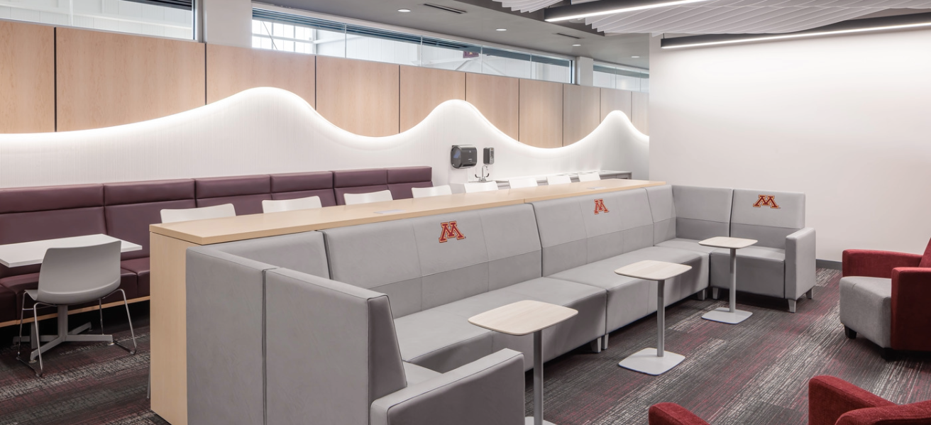 The interior program includes a 14,000 sq. ft. practice gymnasium, locker room, training room, and team lounge; the facility will leverage existing building system infrastructure that anticipated future construction at this location when BWBR and RDG designed the original Village