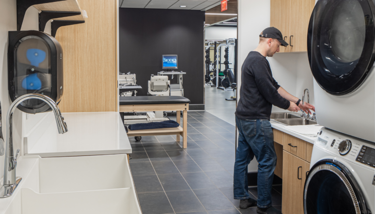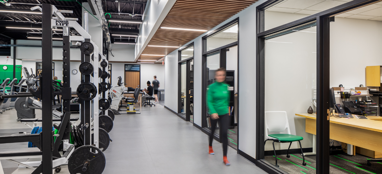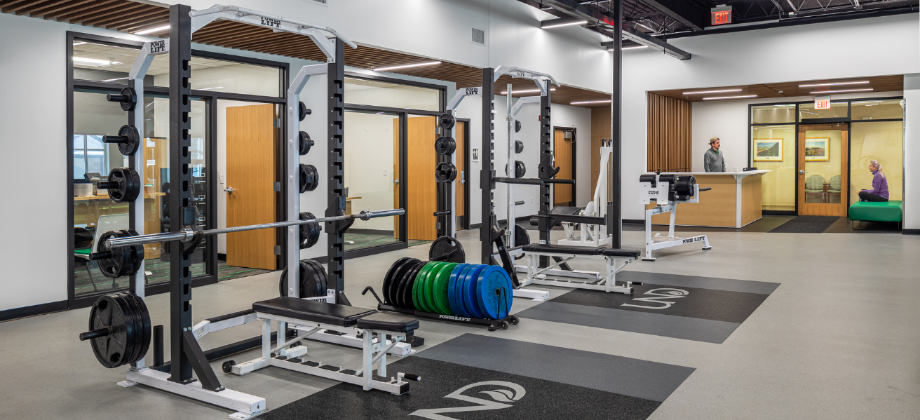 Designed in partnership with architect of record Zerr Berg Architects, BWBR served as the academic and sports medicine planner for the space. Along with providing support space for clinic staff, the facility meets physical therapy treatment needs with zones for exams and diagnosis, sprints and calisthenics, and weightlifting and cardio, aiding both athlete recovery and training for future medical professionals. The new, integrated home for sports medicine brings state-of-the-art healthcare with improved functionality for teaching and learning.