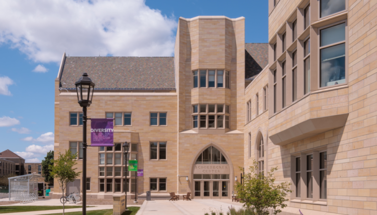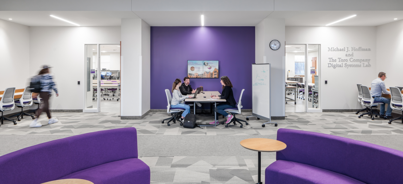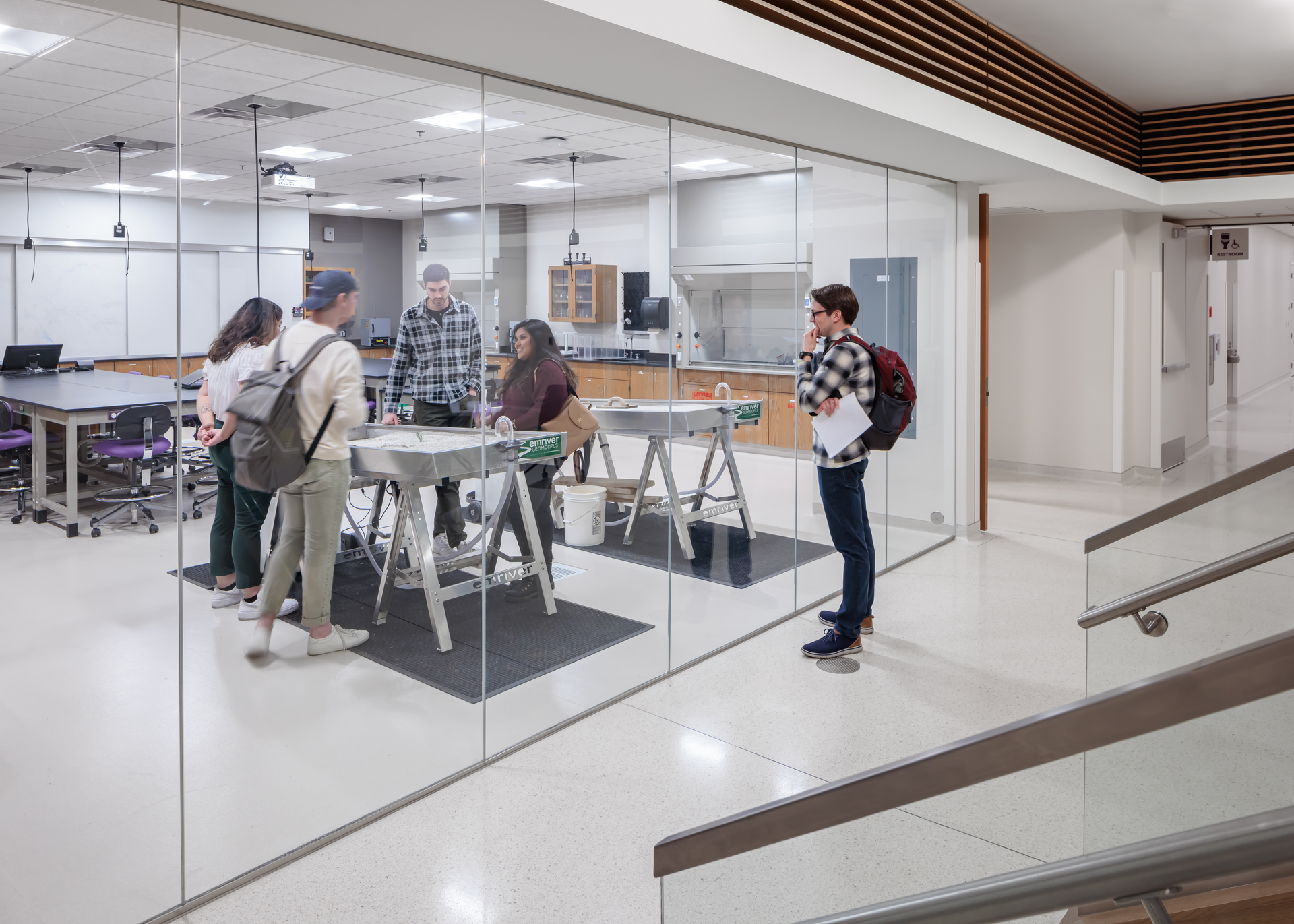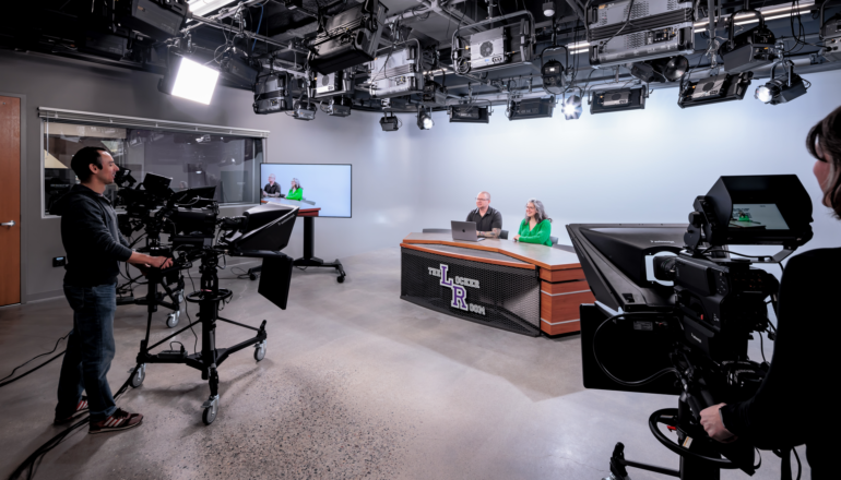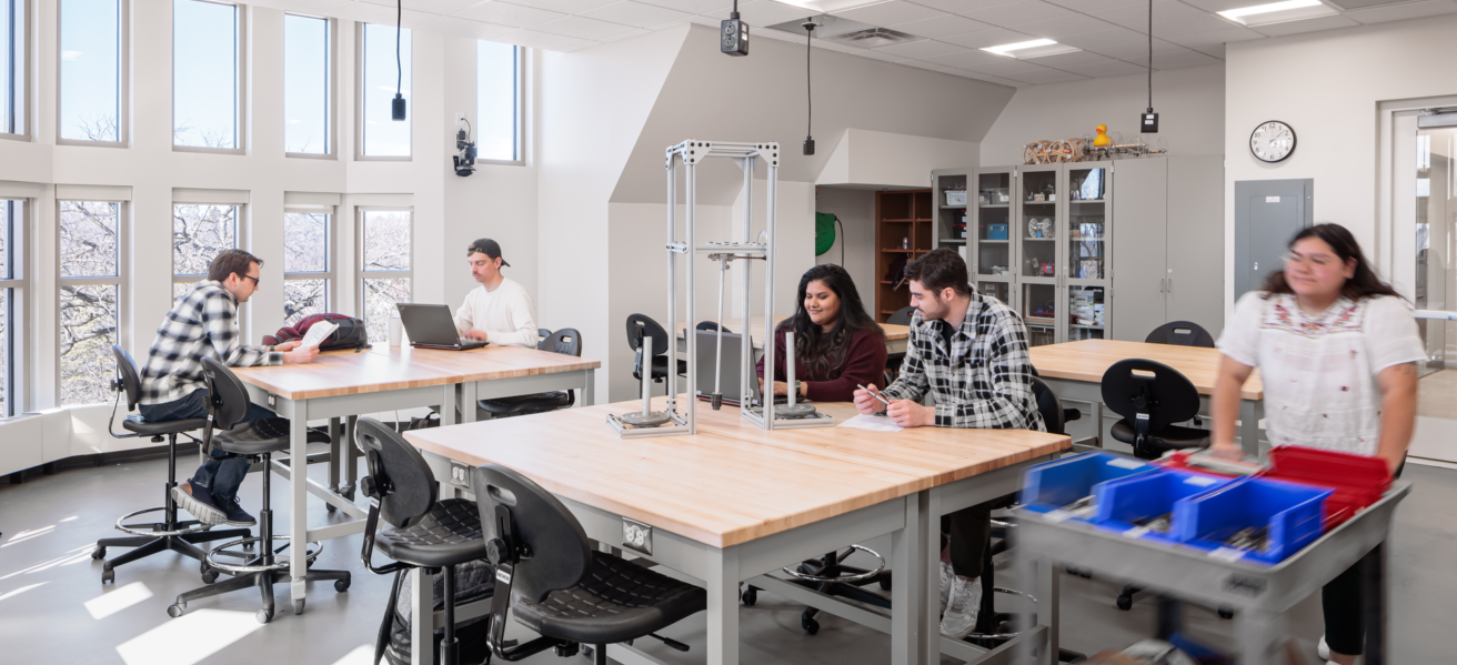 Flexible and collaborative workspaces; two-story engineering bay with 20-foot crane for structural testing; labs for robotics, physics, biology, and chemistry; music rehearsal space that can accommodate a 100-piece orchestra; two-story chorale performance space for up to 150 people; emerging media program with newsroom and studios; art gallery; atrium; cafeteria