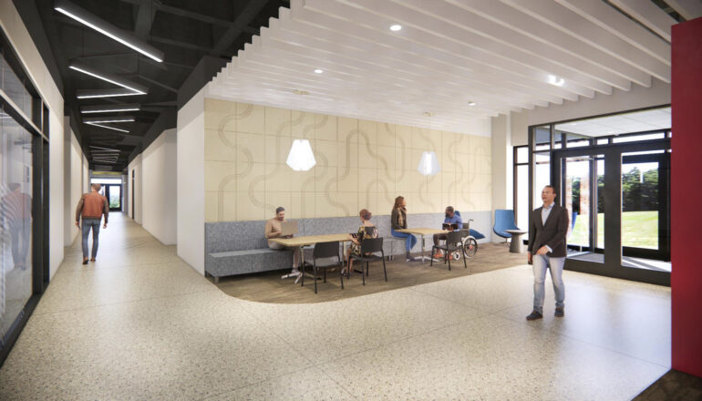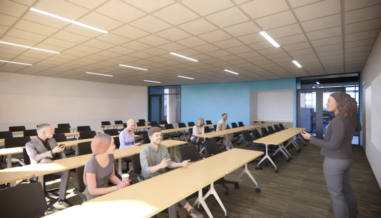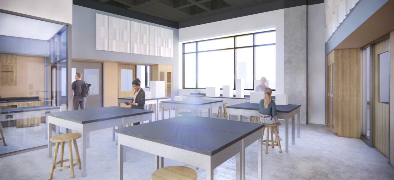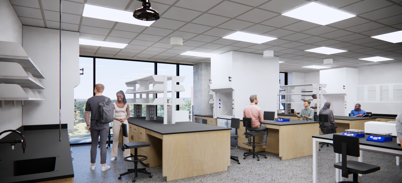 SciTech will house the chemistry, biology, physics, and psychology programs, as well as computer labs, offices, non-classroom learning spaces, and makerspaces with rapid prototyping equipment and tools. The building will contain labs for general, organic, and analytical chemistry; general biology, biotechnology, microbiology, and anatomy and physiology; physics (teaching and projects); human behavior, neurology, and psychiatry; and computational and flex studio rooms.