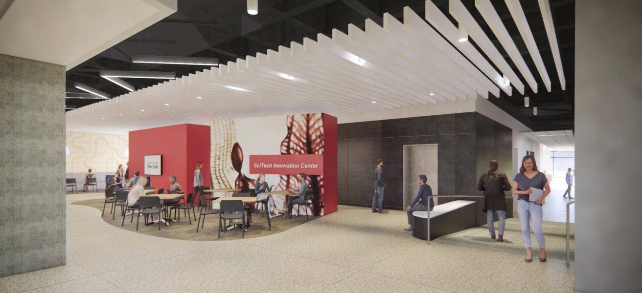 The new three-story Science and Technology (SciTech) Innovation Center will transform the hands-on learning experience for future scientists and engineers, while creating channels for students to collaborate with faculty and regional industry leaders from a variety of disciplines. A new, integrated University and Business Collaboration Center (UBC2) will be a place where employers and students can interact through internships, collaborative research projects, presentations, strategic discussions, product design, and joint professorships.