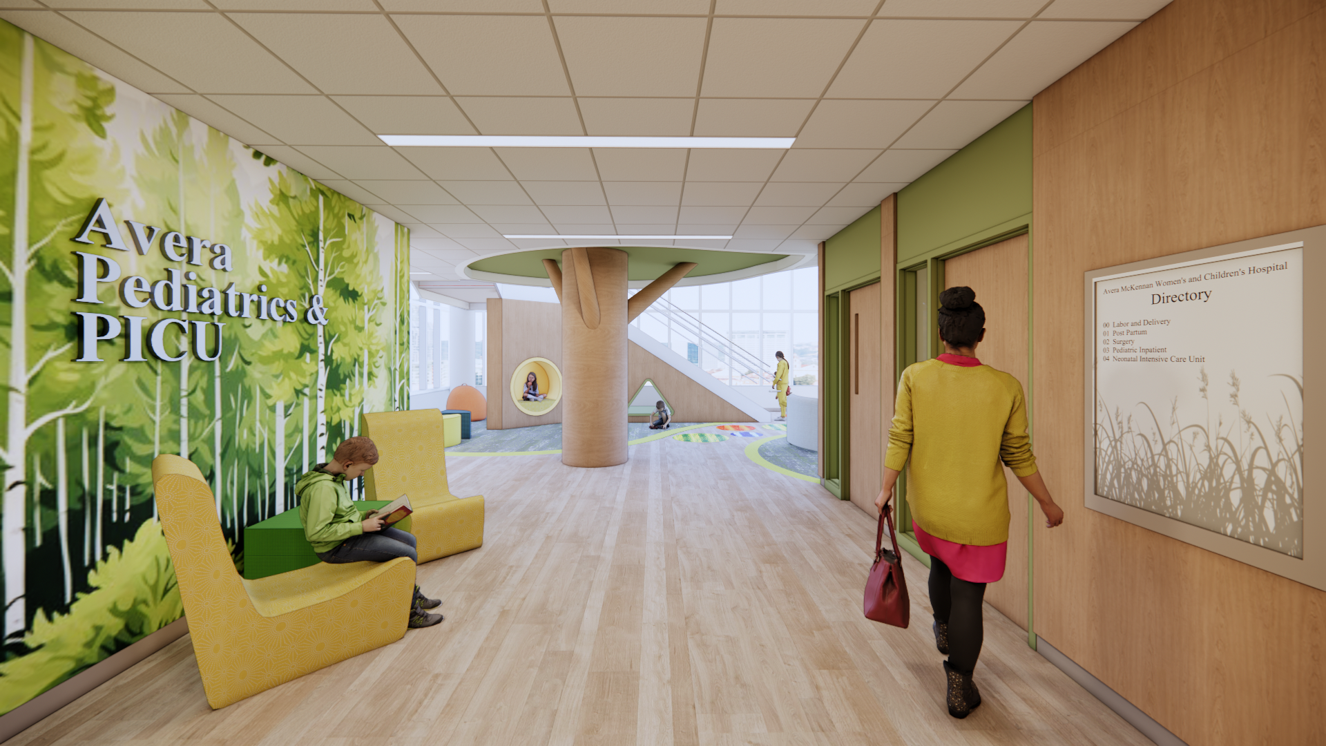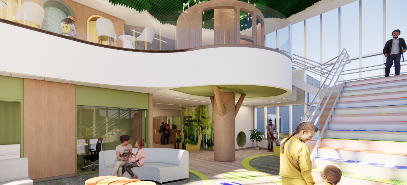 A six-floor addition to Avera McKennan Hospital will consolidate women’s and children’s care into one modernized location, allowing the hospital to serve a larger region and provide better access to the continuum of care. The new tower includes dedicated couplet care rooms, antepartum rooms, a labor and delivery unit with C-section OR’s, a Pediatric Intensive Care Unit (PICU), and Neonatal Intensive Care Unit (NICU). The addition will put the facility on par with nationally recognized women’s and children’s hospitals and give the Sioux Falls region a dedicated center of excellence for families. The project also creates a new grand front entrance for the hospital, an additional café, a gift shop, multiple outdoor patios, enhanced security, and shelled space to accommodate a future surgery expansion with a focus towards women’s and children’s care.